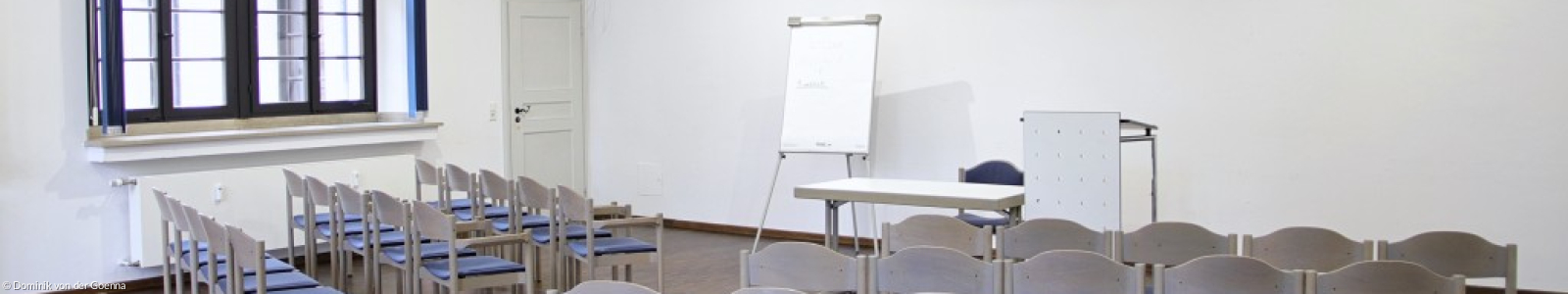 Der Ernst-Troeltsch-Raum befindet sich in einem historischen Renaissance-Gebäude, 1613-15 von Stadtbaumeister Elias Holl erbaut, ehemaliges Gymnasium St. Anna. Große Süd-West-Fenster sorgen für Helligkeit und angenehme Atmosphäre. Mit 80 m2 bietet der Raum Platz für 60 Personen.